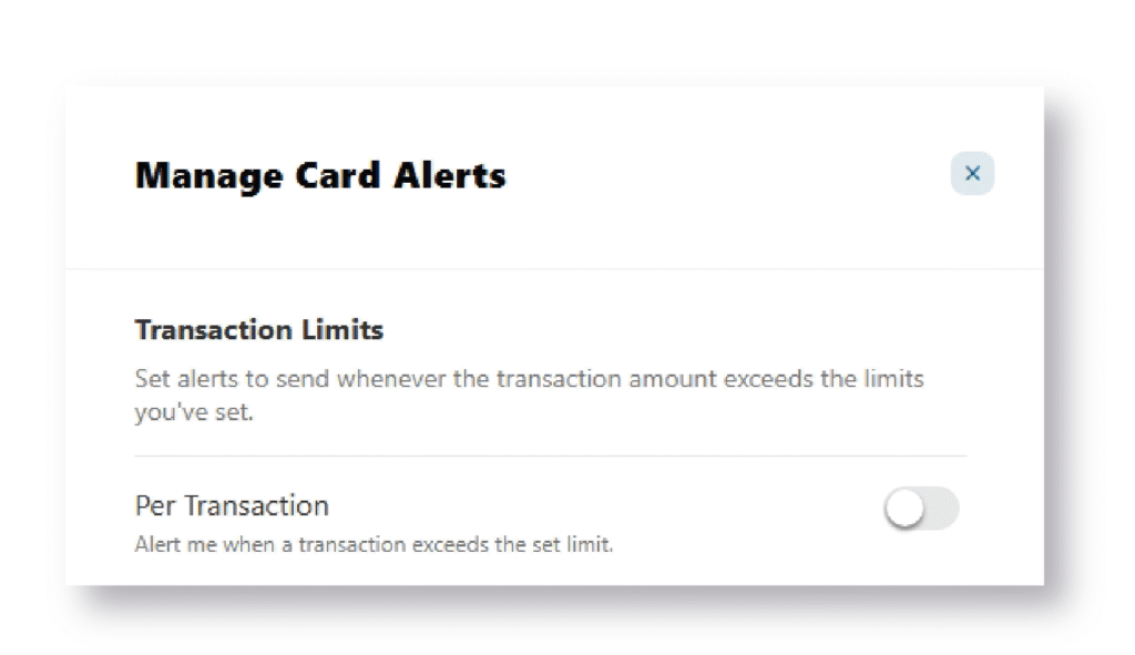 Set the type of card alerts you want to receive and tailor them to your needs. You can also manage card controls to block or enable specific card features for added protection.